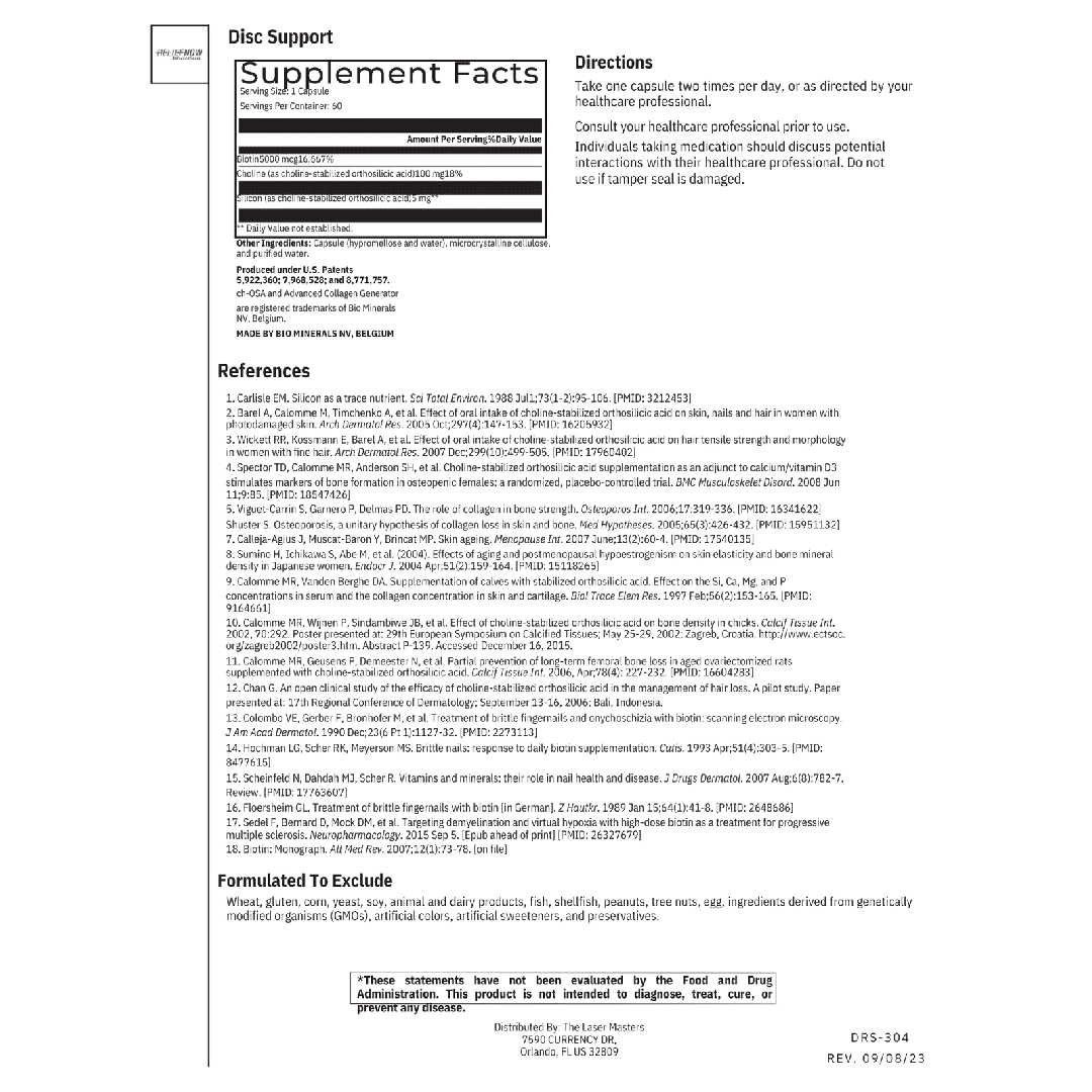 Discover the power of our advanced collagen supplement, Disc Support Formula, designed to revolutionize your joint and spinal disc health. This specially formulated blend is a game-changer, providing essential nutrients to support, rebuild, and strengthen your joints and discs naturally. Experience improved comfort, enhanced mobility, and greater flexibility with our revolutionary Disc Support Formula.